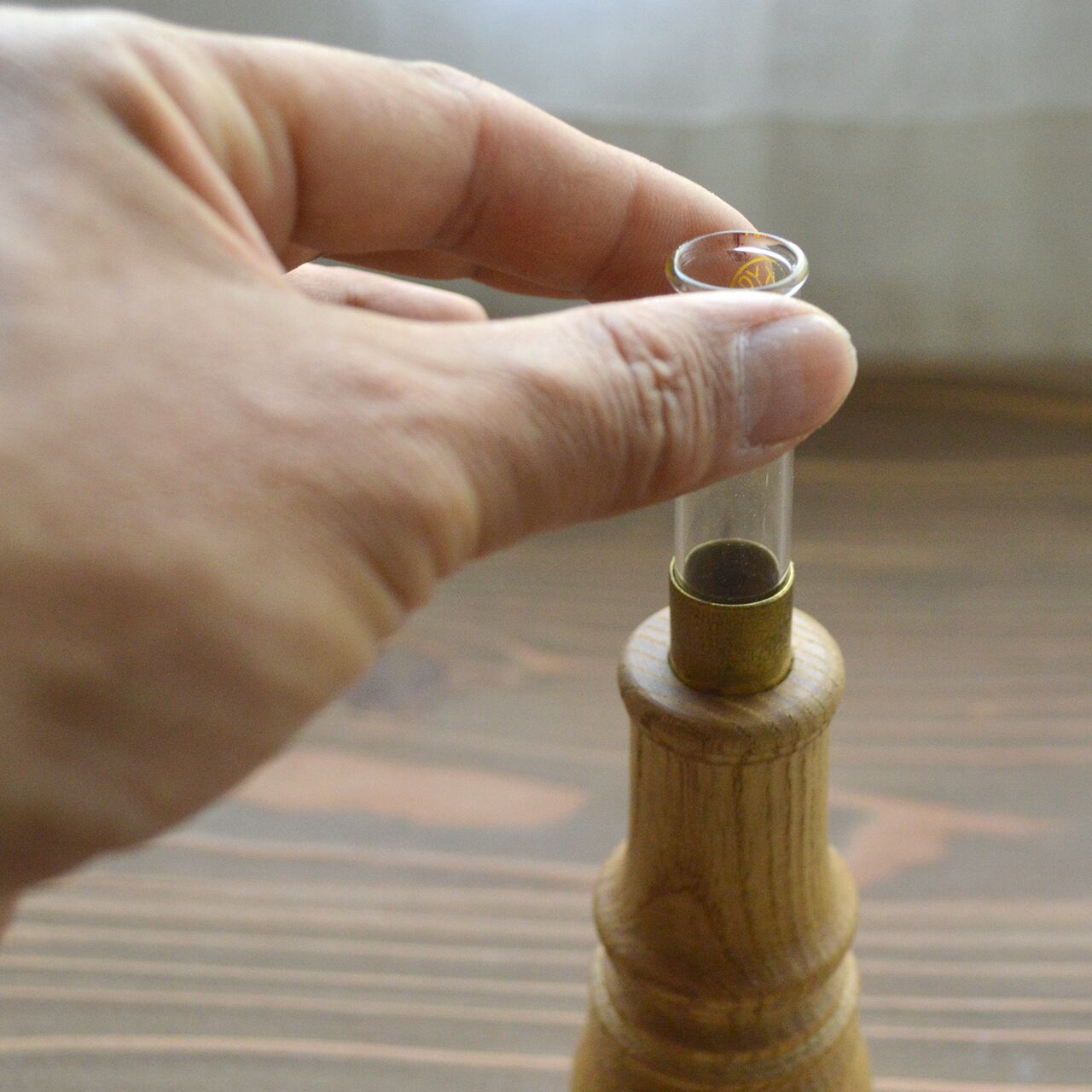 メンテナンス性を考慮し、真鍮の管にぴったり納まる試験管をお付けいたします。