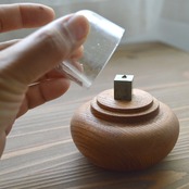 また、台座は欅の無垢材を木工旋盤で削り出した一点もので、小さいながらも重厚感があります。
