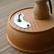 台座の木部は蜜蝋仕上げです。水拭きなどを続けると成分がぬけて、表面が乾燥することがあります。ガサつきがきになる場合は、ヤスリ等をかけて表面を整えてから、布などで蜜蝋や食用オイル等を塗りなおすと、落ち着きます。※塗りすぎにはご注意ください。