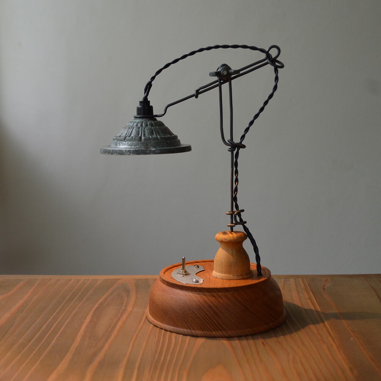 シェードには、実際に昔使われていたであろう古い照明の部品を使用しています。